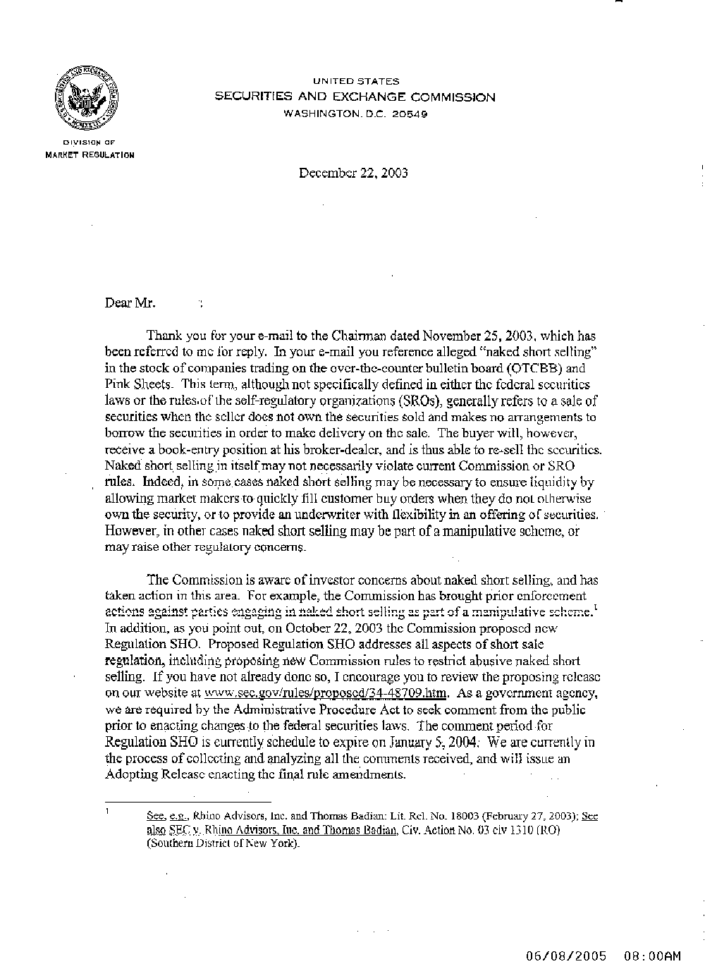 Petition against Naked Shorting : Media Links: